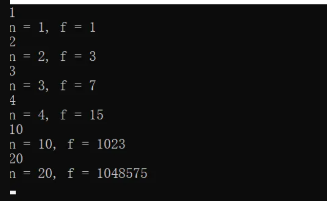 printf("n = %d, f = %lld\n", n, f);