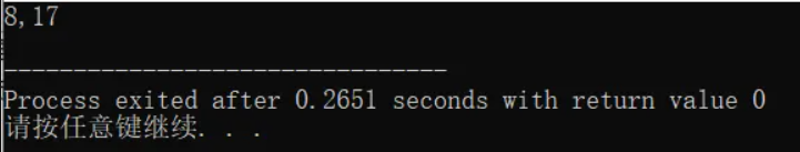 printf("%d,%d\n",p1,p2) ;