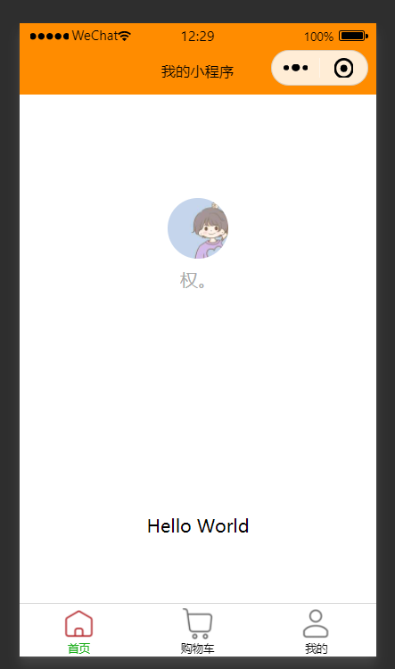 tabBar字段是控制底部菜单栏的。例如下图中的首页,购物车,我的三个菜单。