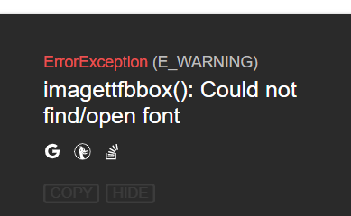 Warning: imagettftext() [function.imagettftext]: Could not find/open font in ***.php on line **
