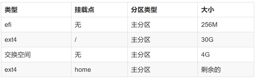 2)UEFI模式下是不需要创建【/boot】分区的,所以我们只需要创建EFI分区做引导就好了,这一点和window系统是一样的。