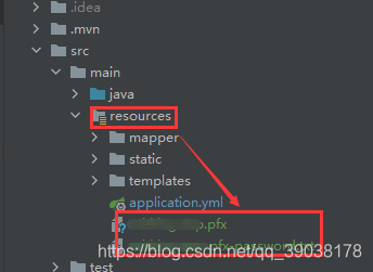 解压证书压缩包文件,两个文件复制到SpirngBoot项目工程的resources资源根目录下: