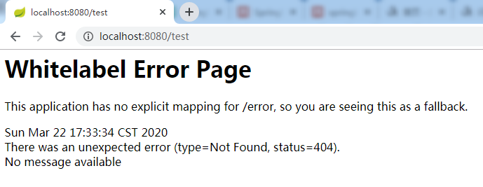 从上图我们可以看到所得到的值是com.main也就可以说明为什么@SpringBootApplication默认扫描同级以及子级目录,而test请求在父级目录所以扫描不到请求自然会出现404的错误,那么如何扫描指定目录的包呢?看下面代码
