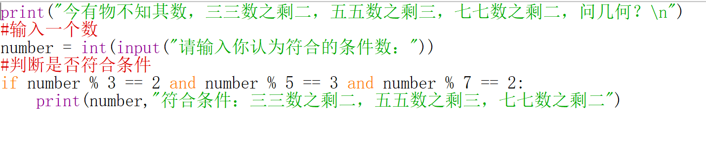 使用for循环语句实现从1循环到00,并且记录符合黄蓉要求的数,具体实现的方法是:应用for循环语句从1迭代到99,在循环体中,判断迭代变量number是否符合要求,如果符合规则则用print()函数输出,否则继续循环。代码如下:
