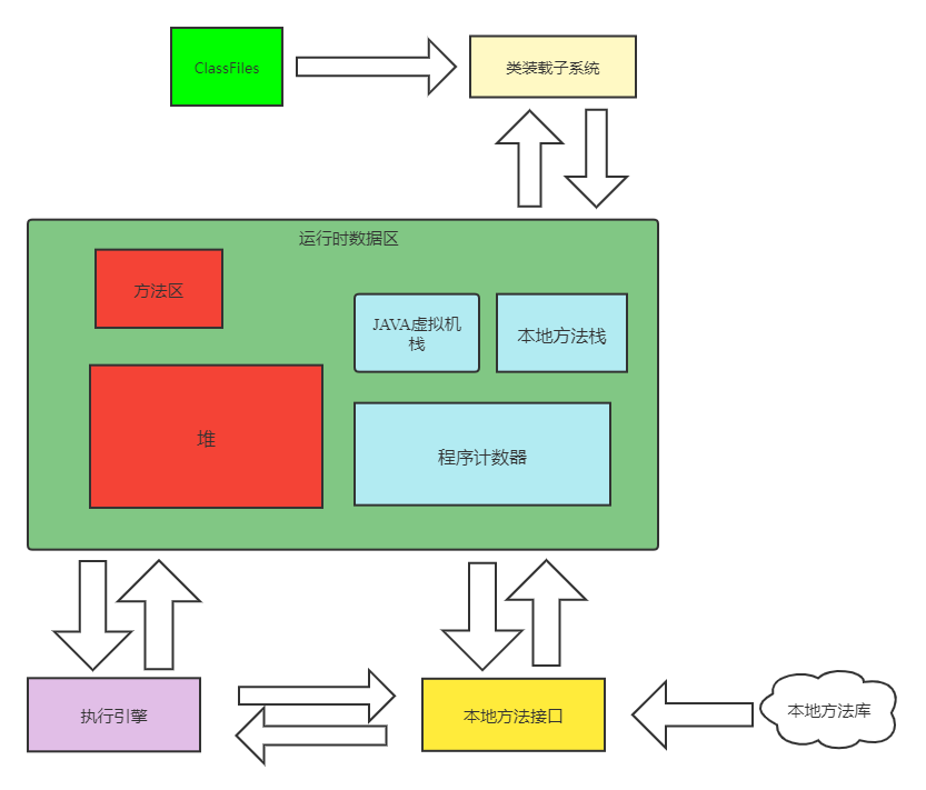 本地方法接口:Java有时要和操作系统或其他硬件设备进行交互那就需要调用C/C++代码通过本地方法接口来调用本地方法。