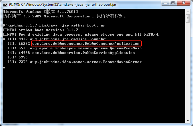 2. 输入 java -jar arthas-boot.jar