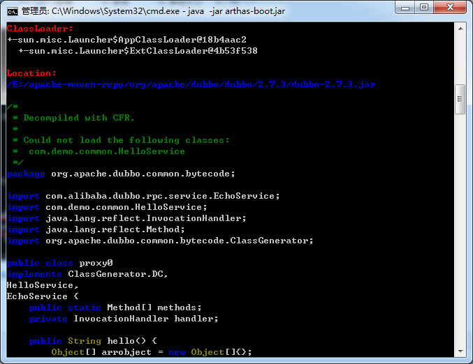 输入 jad org.apache.dubbo.common.bytecode.Proxy0
