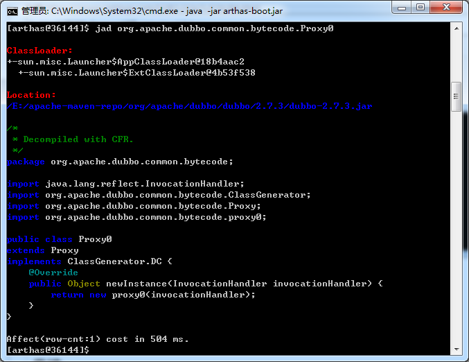 5. 输入 jad org.apache.dubbo.common.bytecode.proxy0