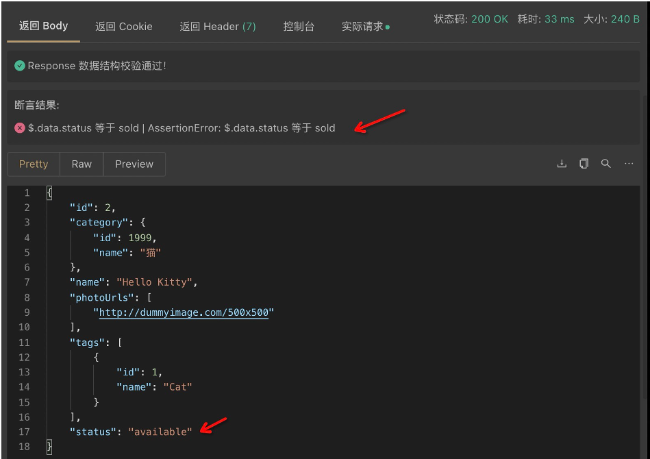 使用 Apifox 调试接口的时候,系统会根据接口文档里的定义,自动校验返回的数据结构是否正确,无需通过肉眼识别,也无需手动写断言脚本检测,非常高效!