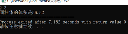 3.编写程序,接收圆柱体的底面半径和高,输出其体积(结果保留两位小数)。