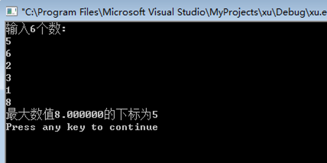 2使用一堆数组,从键盘上接收6个数,找出最大的那个元素并记录下它的下标。