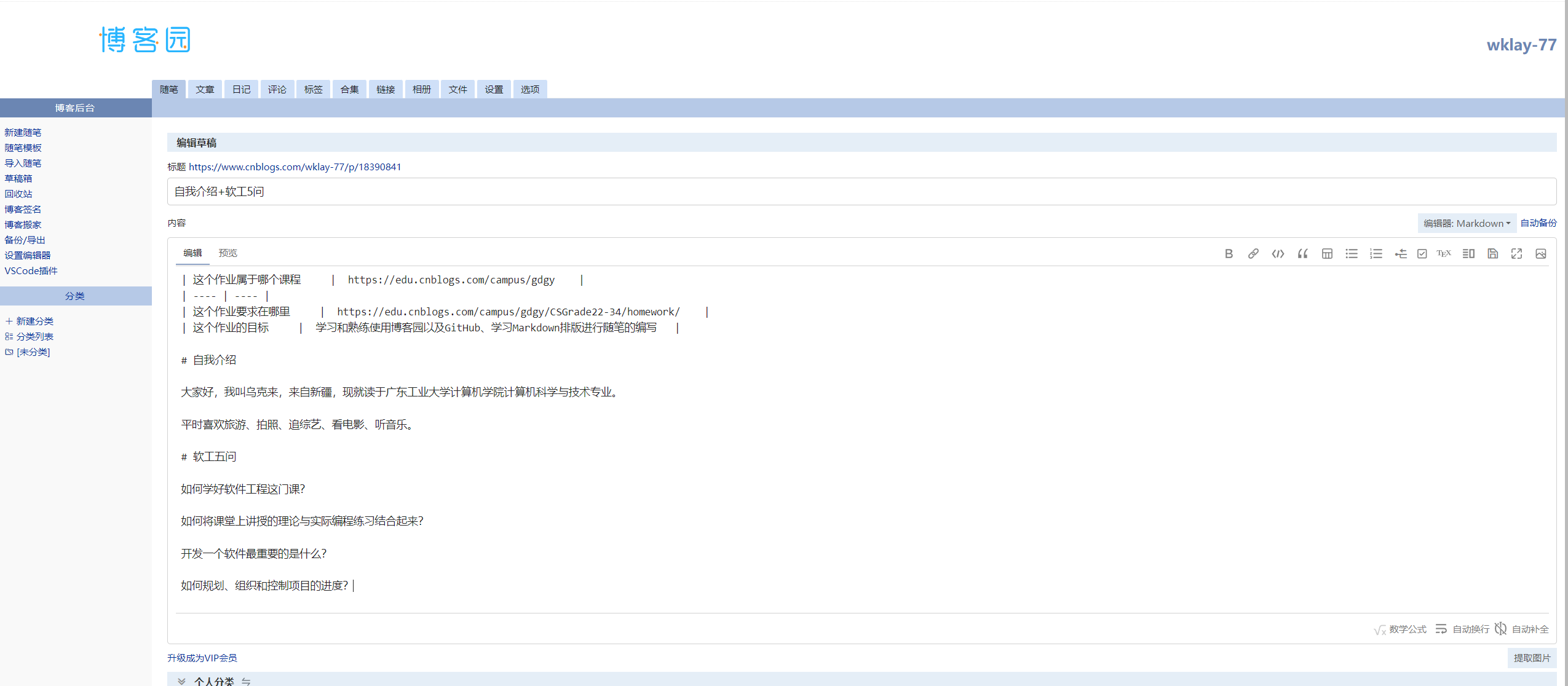 | 这个作业的目标 | 学习和熟练使用博客园以及GitHub、学习Markdown排版进行随笔的编写 |