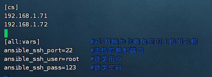 1、编辑/etc/ansible/hosts文件,在文件最后添加以下内容。