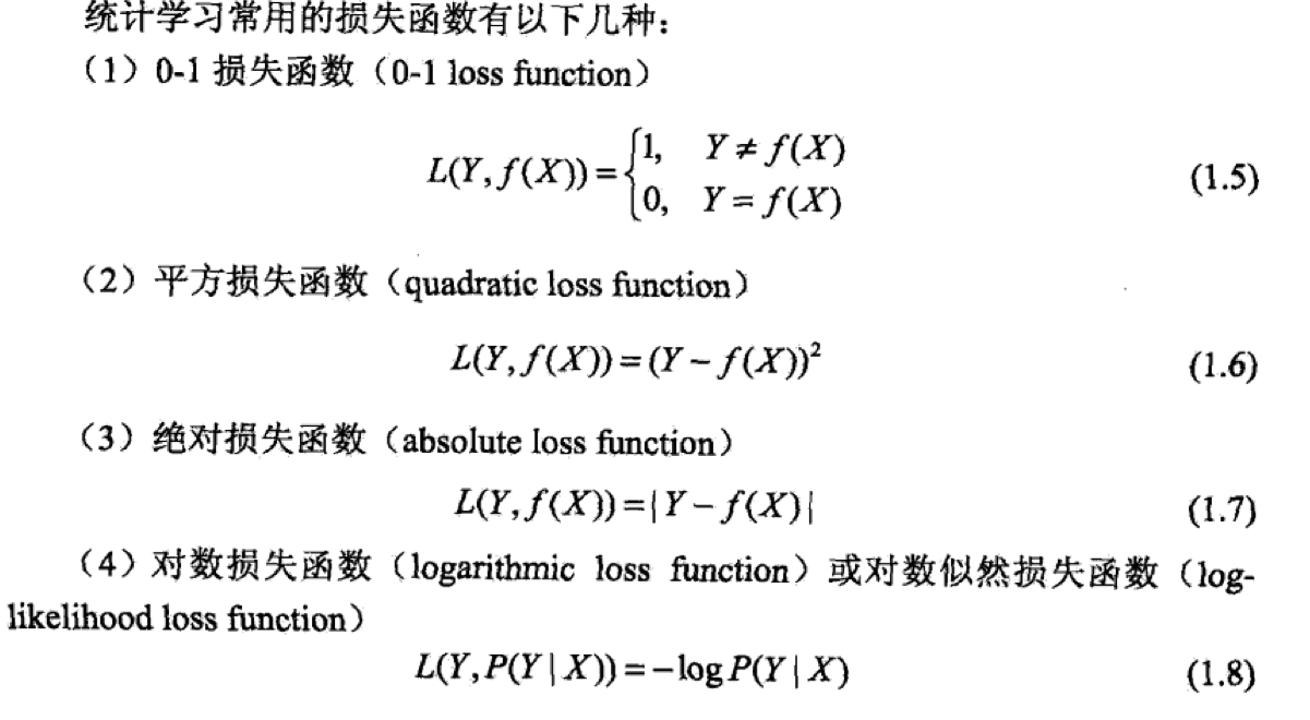 监督学习问题是在假设空间F中选取模型f作为决策函数,对于给定的输入X,由f(X)给出相应的输出Y,这个输出的预测值f(X)与真实值Y可能一致也可能不一致,用一个损失函数(loss function)或代价函数(cost function)来度量预测错误的程度.损失函数是f(X)和Y的非负实值函数,记作L(Y,f(X)).