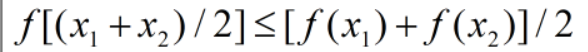 严格的来说应该是f[(x1+x2)/2]<[f(x1)+f(x2)]/2例如f(x)=x2