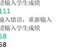 import java.util.Scanner; public class xxx5 { public static void main(String[] args) { Scanner input = new Scanner(System.in); for (int i = 0;; i++) { System.out.println("请输入学生成绩"); int s = input.nextInt(); if (s < 0 || s > 100) { System.out.println("输入错误,重新输入"); } else { System.out.println(s); break; } } } }