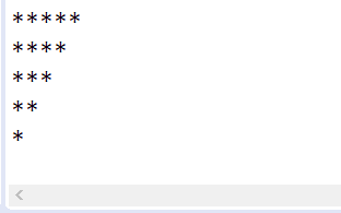 public class xxxx { public static void main(String[] args) { // TODO Auto-generated method stub for(int i=1;i<=4;i++){ for(int j=1;j<=4-i;j++){ System.out.print(" "); } for(int k=1;k<=2*i-1;k++){ System.out.print("*"); } System.out.println(); } System.out.println(); System.out.println(); System.out.println(); System.out.println(); for(int i=1;i<=5;i++){ for(int j=1;j<=6-i;j++){ System.out.print("*"); } System.out.println(); } } }