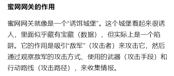 - 问题1:到底什么是蜜网网关,在做拓扑图之前我没有看懂蜜网网关的作用,也不知道他能发挥什么用处?