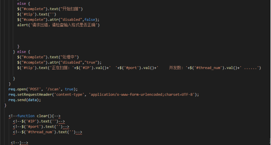 该模块使用了flask框架技术,一个请求对应一个处理函数,接受了前端传来的数据,根据数据构造出供complete模块使用的参数,然后调用complete模块开始扫描,扫描结果序列化为json数据,然后返回前端,核心如图: