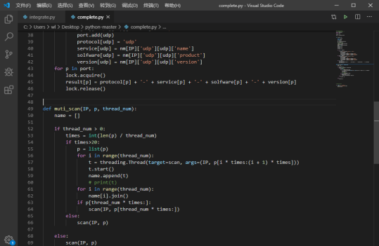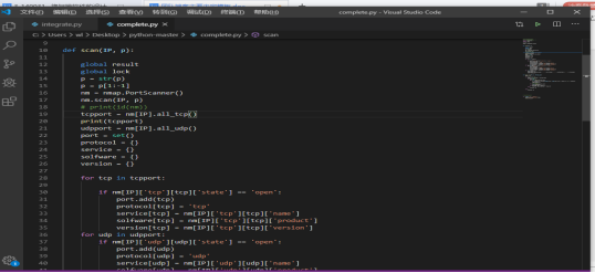 该模块完成端口扫描工作,开启多个线程,构造适用于nmap的参数,调用nmap的scan函数完成扫描,核心实现如下: