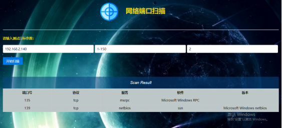 基于python web的在线端口扫描器,登陆网站即可进行扫描,可分别输入零散的多个端口,也可以输入连续的一系列端口进行扫描,可扫描出端口的开放情况,端口类型,端口上运行的服务以及运行该服务的软件及版本等信息,使用简单,运行快速。可供网络管理员查看网络信息,模拟渗透测试时使用。