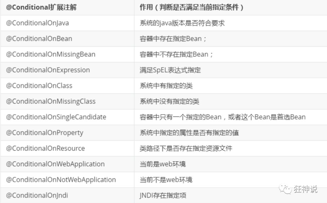 作用:必须是@Conditional指定的条件成立,才给容器中添加组件,配置配里面的所有内容才生效;