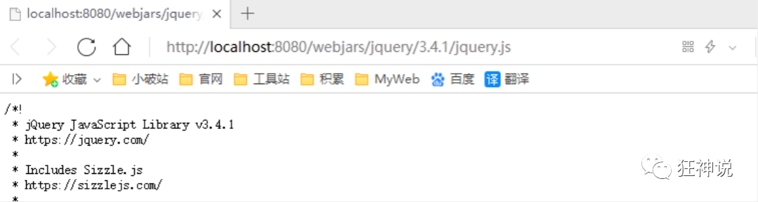 导入完毕,查看webjars目录结构,并访问Jquery.js文件!