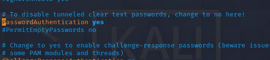 (2)找到passworAuthentication 选项,把注释去掉,后面改为yes
