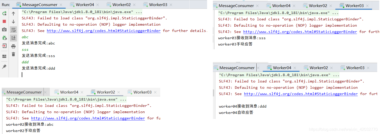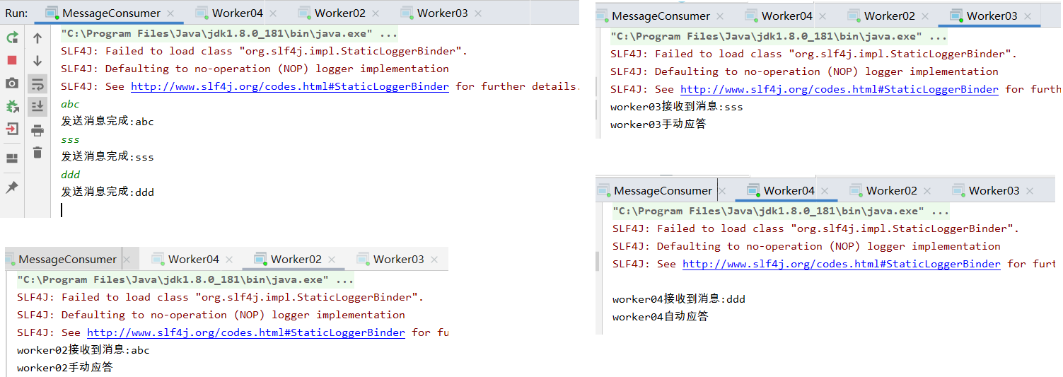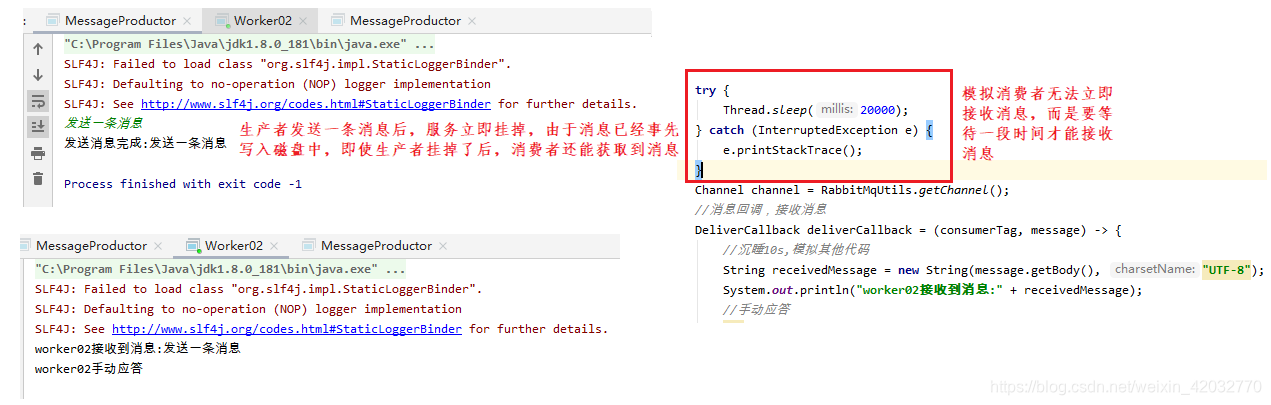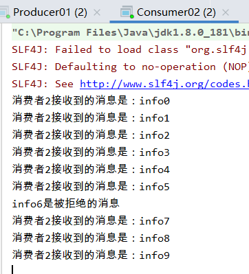 System.out.println("worker02接收到消息:" + receivedMessage);