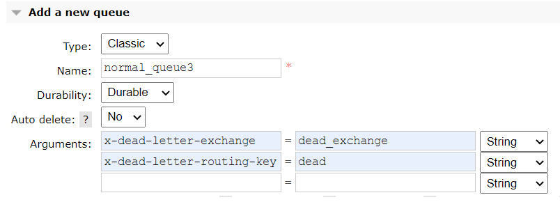但是这样子的延迟队列是存在一个问题的,就是如果先后发了一条ttl为30s的消息以及一条ttl为10s的消息。由于队列是“先进先出”的特性,因此那条ttl为10s的消息发出后,即使到了10s,因为前面有一条ttl为30s的消息没发出去会挡住ttl为10s的消息的。这就造成了堵塞。ttl为10s的消息只有等ttl为30s的消息发出去后,才会发出去。