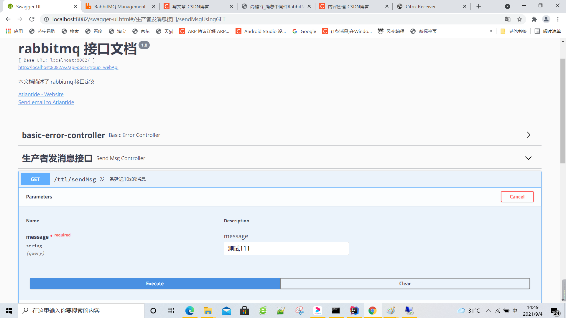 消息生产者接口代码(设定延迟时间用setDelay(1000)方法)。