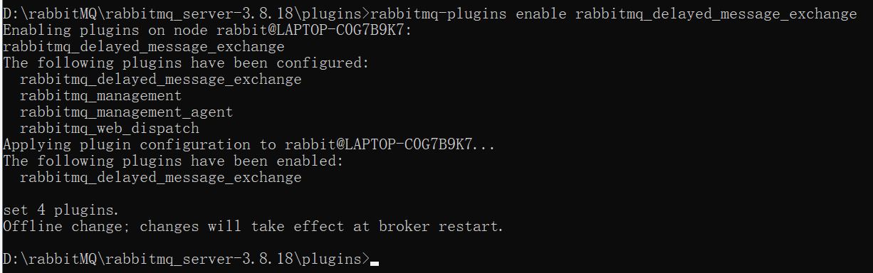 进入plugins目录,使用命令:rabbitmq-plugins enable rabbitmq_delayed_message_exchange