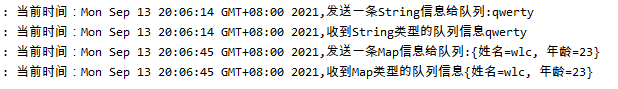 log.info("当前时间:{},收到Map类型的队列信息{}", new Date().toString(), map);