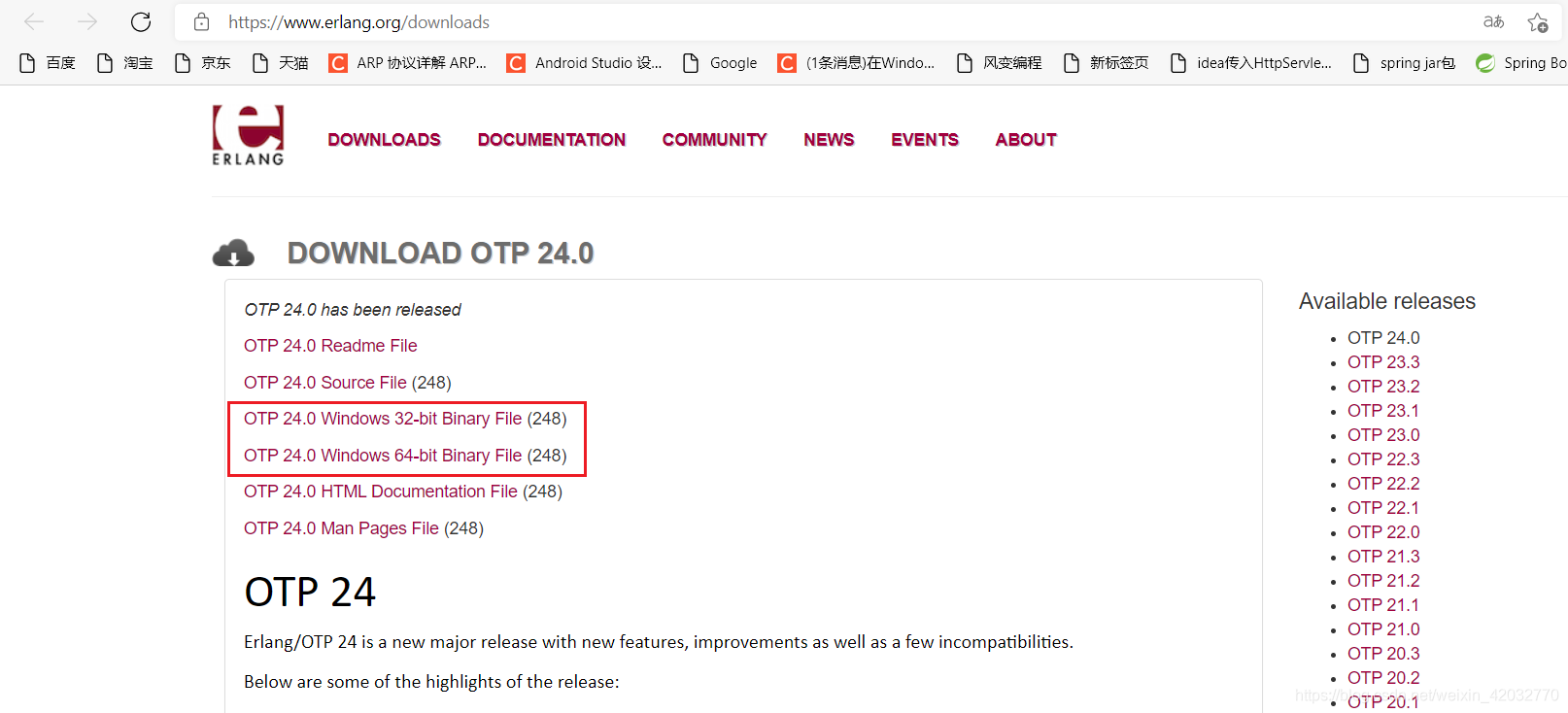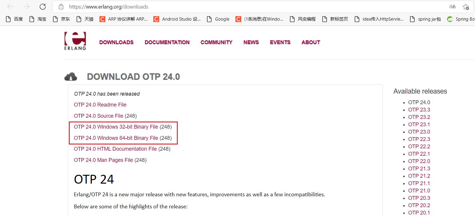 下载地址:http://www.erlang.org/downloads