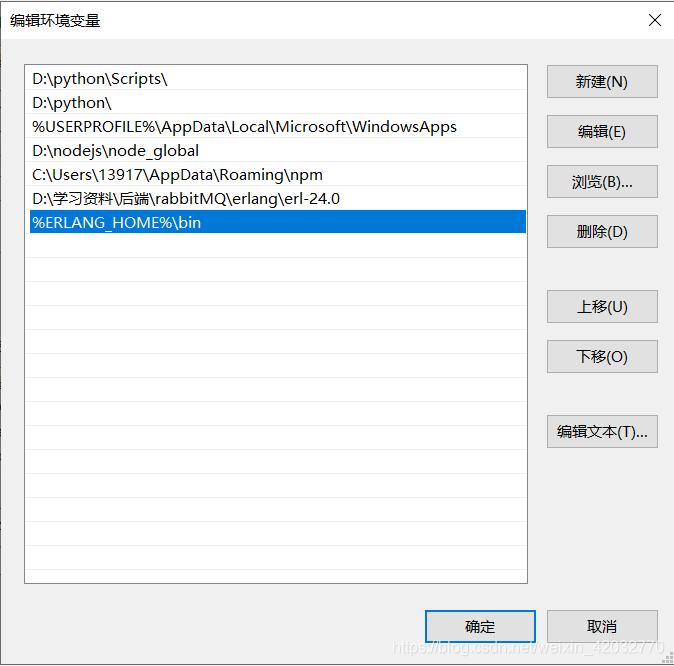 新增一个环境变量:ERLANG_HOME