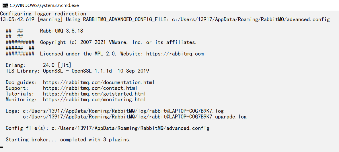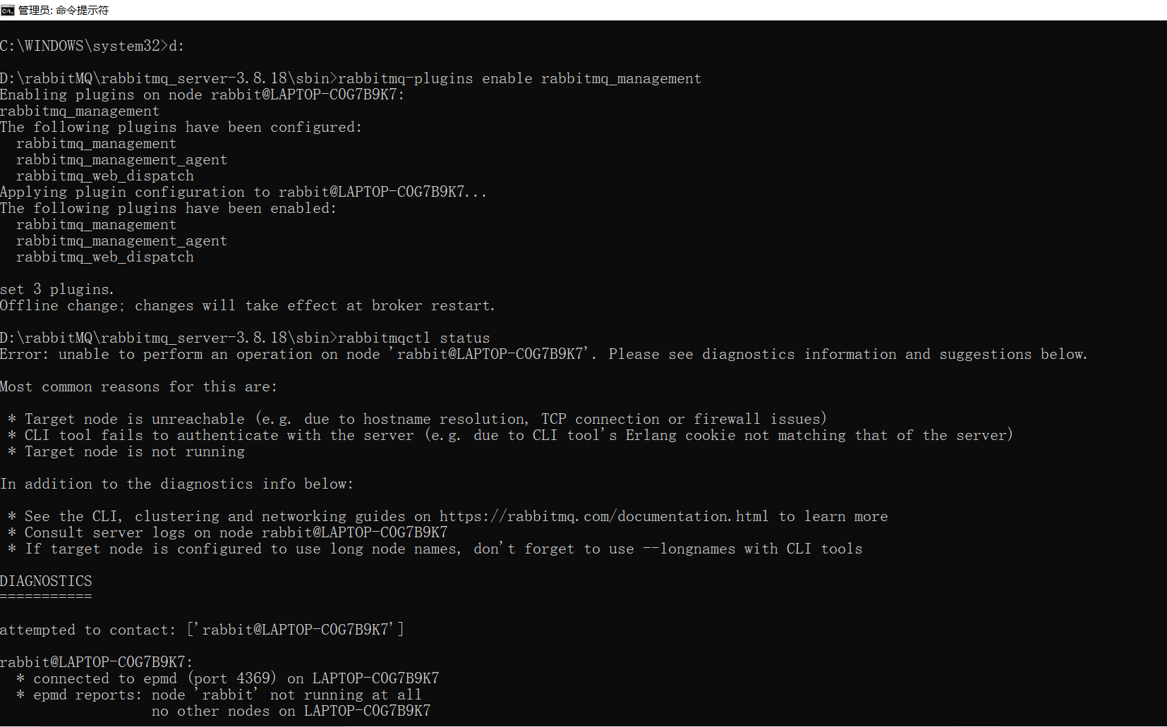 cd D:\rabbitMQ\rabbitmq_server-3.8.18\sbin