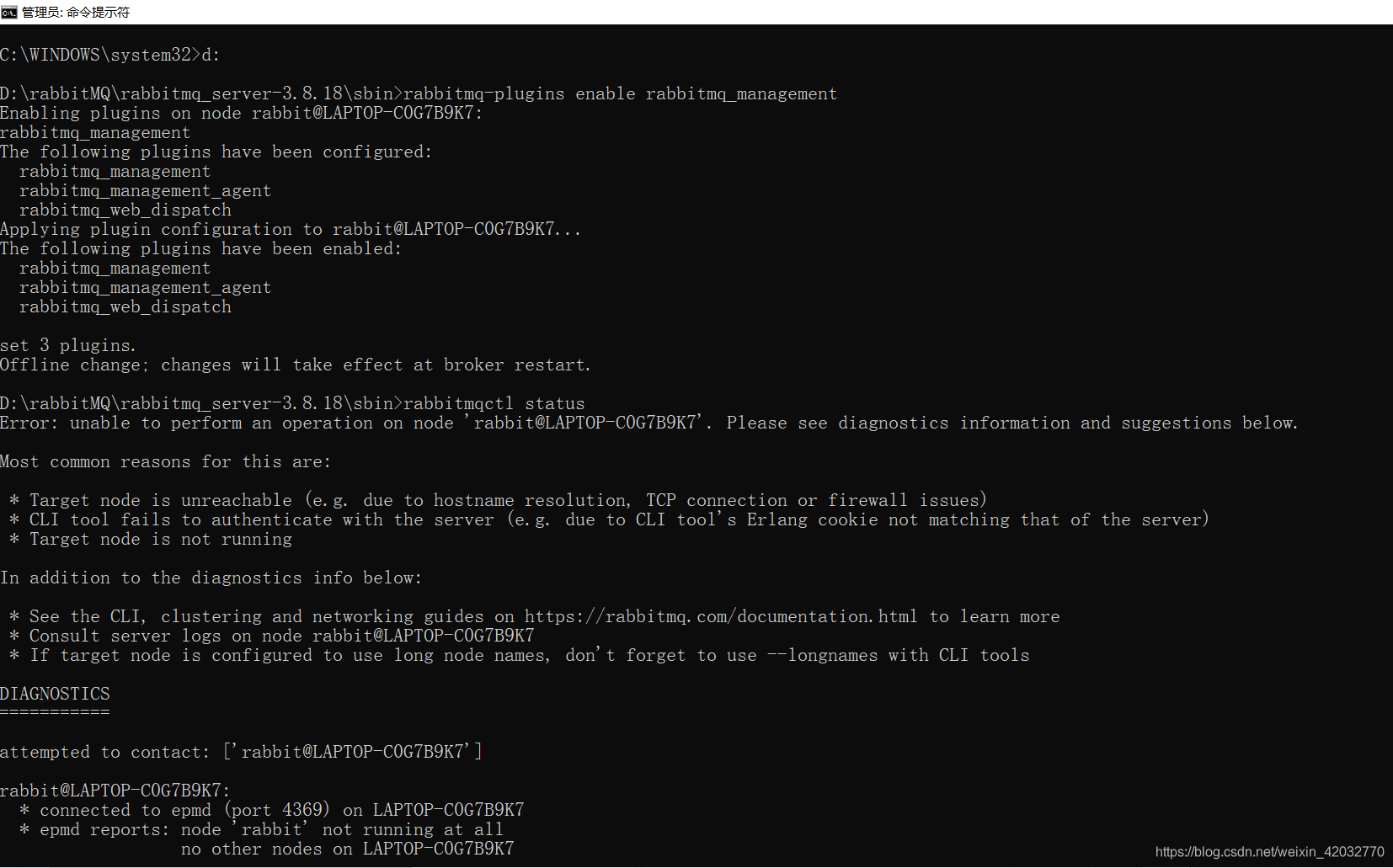 安装完成后,在cmd下进入到rabbitMQ的sbin目录下