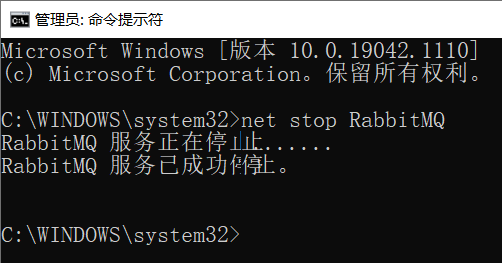 如果想停止rabbitMQ服务,可以通过命令:net stop RabbitMQ