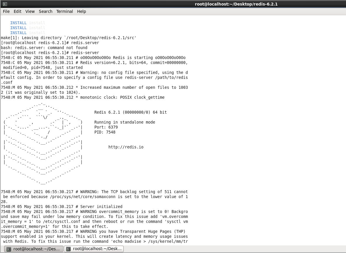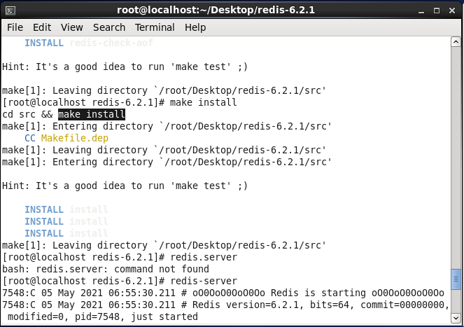 在redis-6.2.1目录下再次执行make命令(只是编译)