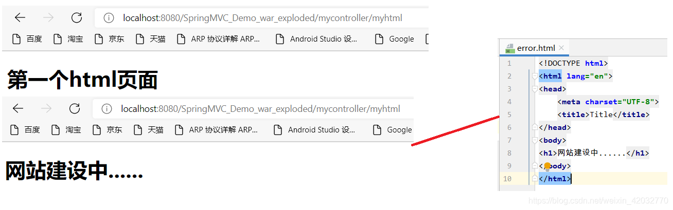2、在前端控制器设置异常处理界面,使得如果系统发生了异常,则系统异常不直接展示给用户