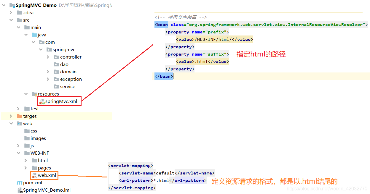 5、View Resolver(视图解析器):View Resolver 负责将处理结果生成 View 视图,View Resolver 首先根据逻辑视图名解析成物理视图名即具体的页面地址,再生成 View 视图对象,最后对 View 进行渲染将处理结果通过页面展示给用户。