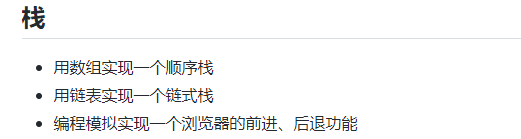 详情可参考“极客时间”上的《数据结构与算法之美》课程:08 | 栈:如何实现浏览器的前进和后退功能? (geekbang.org)