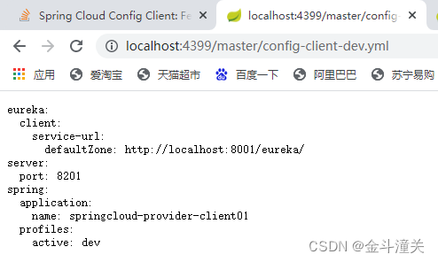 uri: http://localhost:4399 #通过4399这个服务再连接到git上面1获取配置