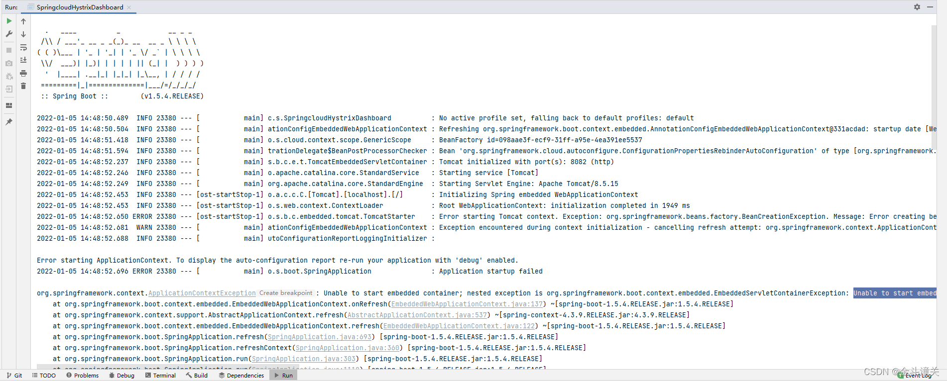 最近在学习springcloud的时候,在父工程下新建一个model后,引入dashboard相关依赖后启动报错