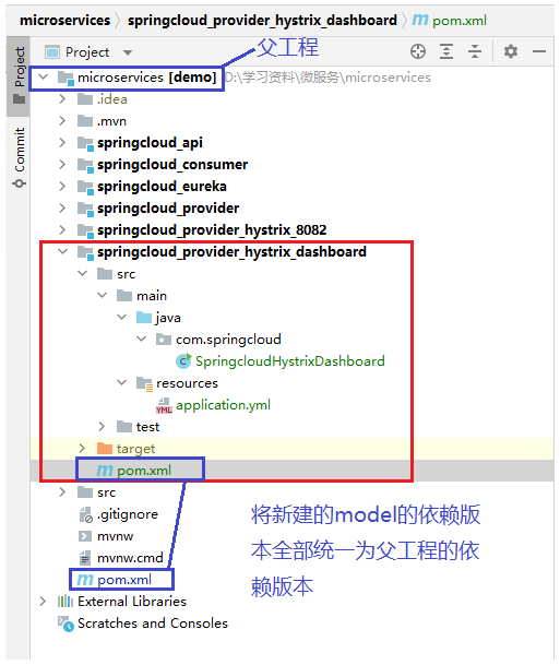 将新建的model的依赖版本全部统一为父工程的依赖版本