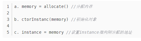 我的理解是:当new一个对象时,会先在内存中开辟一块空间,有了这个空间才会去初始化这个对象,然后在把这个对象指向内存中新开辟的空间。然后在高并发的情况下,会在极短的时间内需要new大量的对象。CPU为了处理方便,可能就不会对于每个要new的对象单独分别去做“分配内存”->“初始化对象”->“设置地址”这样的操作。有可能比如CPU先申请一块内存空间,然后初始化对象,发现之前申请的内存空间不够,因此部分对象无法初始化,即便初始化了也暂时没有多余的空间分配,CPU只能重新再申请一块新的空间,因此执行顺序从原来的“先分配内存再初始化对象”到现在的“先初始化对象,结果发现没内存空间了,因此CPU再去分配内存”。如此往复。
