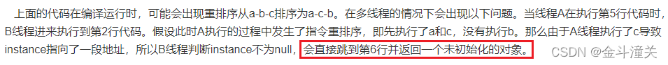 volatile关键字的作用是防止编译的时候出现“指令重排”,其实我也不是很懂为什么“指令重排”会影响线程安全。我看了一篇文章,说是在并发的情况下,CPU为了执行方便可能会对一些既有的指令顺序进行重新排列指令的执行先后顺序。