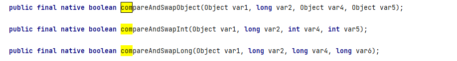 compareAndSwap相关的方法都是用“native”修饰的,CAS本身并不是由java去实现的,java只是使用而已。CAS算法是用C语言实现的,更接近操作系统。是通过C语言的指针,直接指向内存地址。因为是指针直接操作内存所以无论并发有多少,每个地址空间的指针总是唯一的。使用指针的唯一性以达到线程安全的作用。