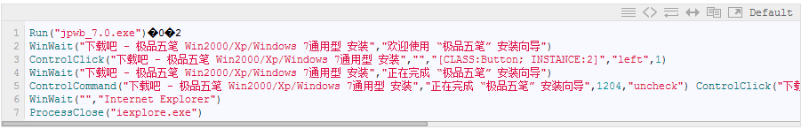 1ControlCommand("下载吧 - 极品五笔 Win2000/Xp/Windows 7通用型 安装","正在完成 “极品五笔” 安装向导",1204,"uncheck")