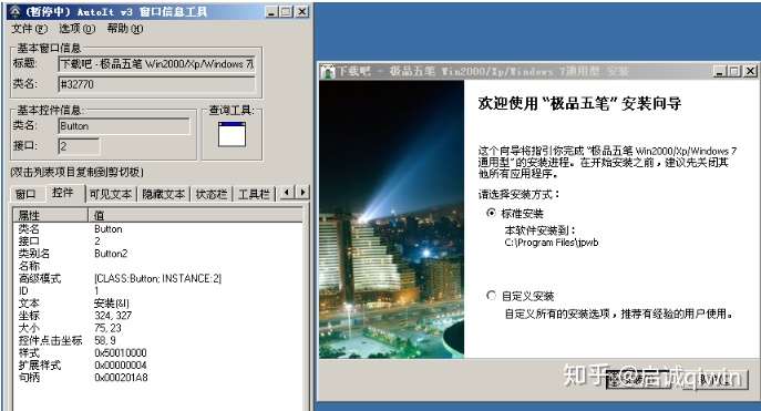 1ControlClick("下载吧 - 极品五笔 Win2000/Xp/Windows 7通用型 安装","","[CLASS:Button; INSTANCE:2]","left",1)